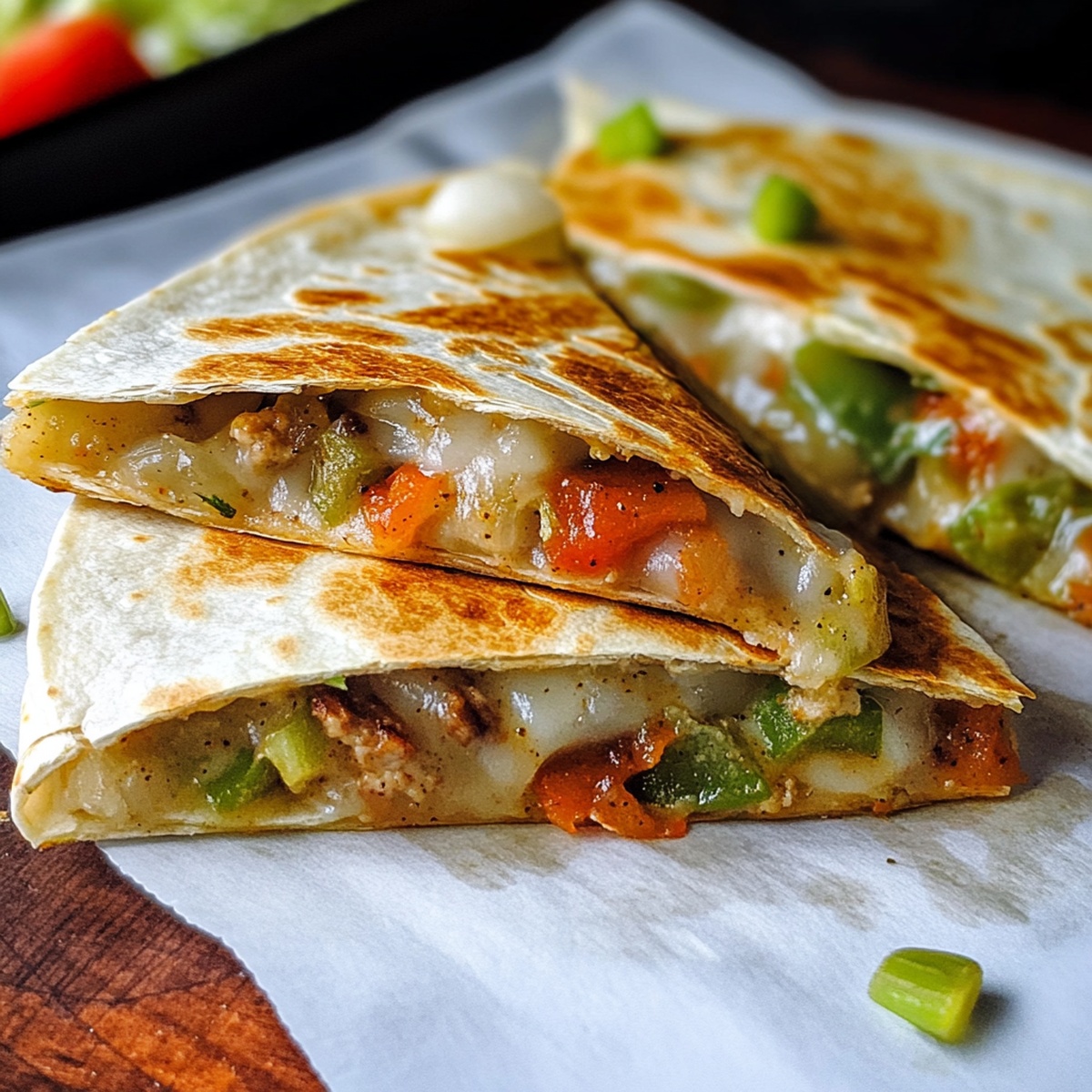 For extra crunch, brush the outside of the tortillas with a bit more olive oil before toasting. Don’t overcrowd your skillet—work in batches for even browning and melted cheese throughout. If you want a smokier flavor, add a sprinkle of smoked paprika or serve with chipotle salsa. Make sure all fillings are evenly distributed so each bite is balanced. Let quesadillas rest for a minute before cutting so the cheese doesn’t ooze out.
