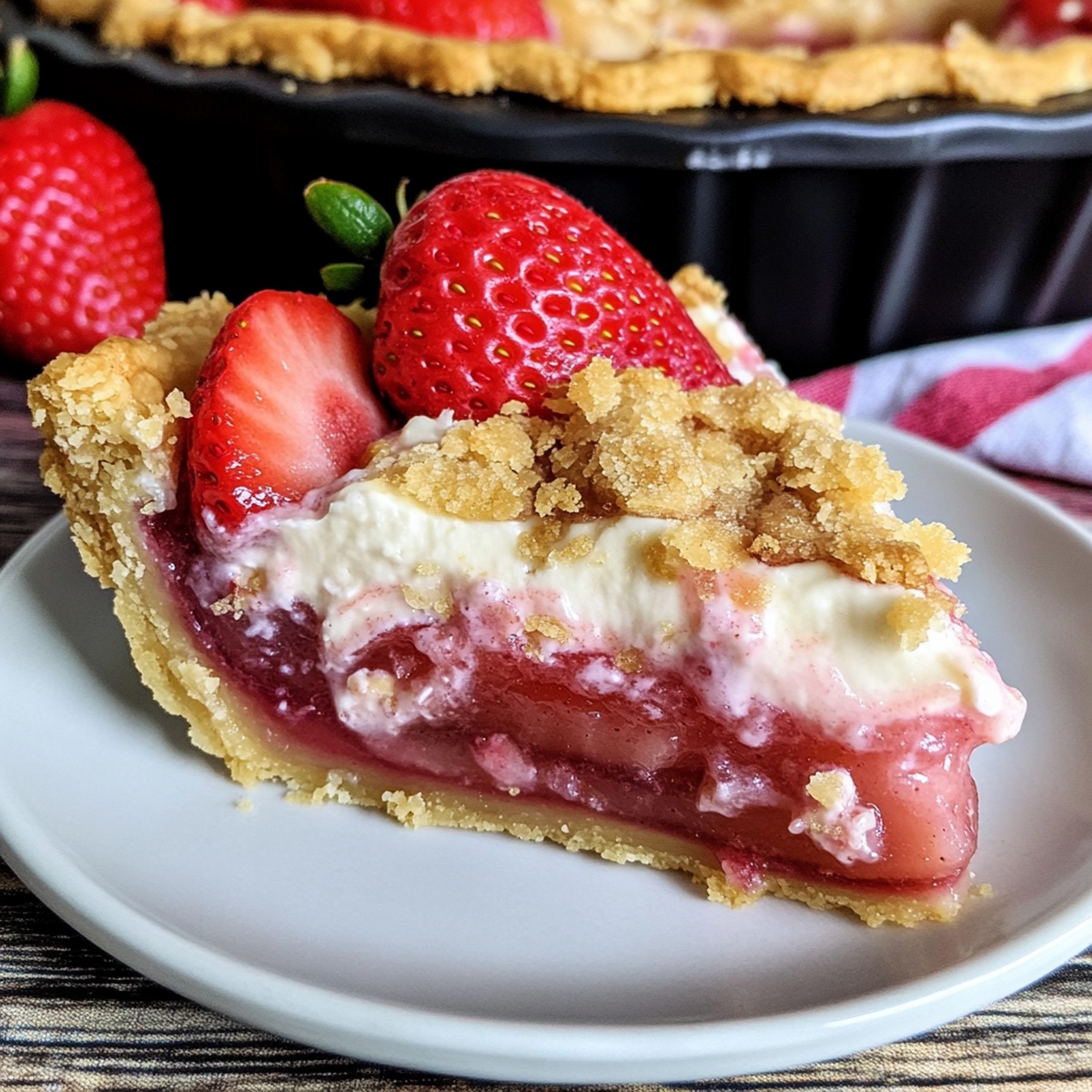 This pie is a stunner on its own, but a little garnish goes a long way. Serve each slice with a generous puff of whipped cream or a scoop of vanilla bean ice cream if you’re feeling decadent. For a fresh touch, scatter a few thinly sliced strawberries or a sprinkle of lemon zest over the top right before serving. Pair it with hot coffee or an iced herbal tea—both highlight the pie’s sweet-tart contrast beautifully.